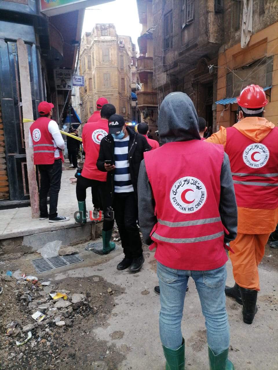 ووضع رجال الأمن والحماية المدنية الحواجز الحديدية لمنع اقتراب المارة والمواطنين من العقار حفاظا على سلامة الأرواح وتواجد سيارات الإسعافات الأولية بمحيط العقار لانتشال قاطنى العقار واسعافهم.
