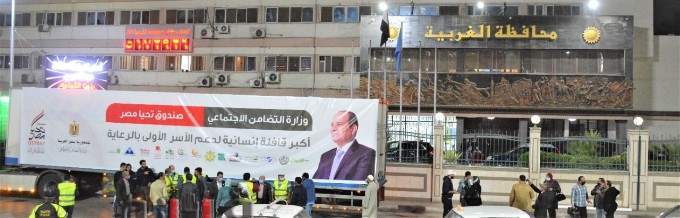 استقبل اليوم الدكتور طارق رحمي محافظ الغربية يرافقه الدكتور أحمد عطا نائب المحافظ، القافلة المخصصة لمحافظة الغربية والمكونة من ١١ سيارة نقل تحتوي على ٣٠٧٣٩ شنطة مجمدات، ٨٥٥٠ شنطة وجبات، ١١٠٠٠ كرتونة مواد غذائية و ٤٥٠٠ بطانية تنفيذاً لتوجيهات الرئيس عبد الفتاح السيسي رئيس الجمهورية بإطلاق أكبر قافلة مساعدات للأسر الأولى بالرعاية.