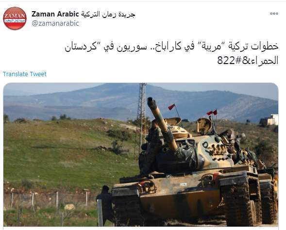وأكد التحركات المريبة ممثل الإدارة الذاتية لشمال شرق سوريا شفان الخابوري، الذي قال إن لديه معلومات مؤكدة بشأن قيام حكومة العدالة والتنمية التركية بنقل أسر سورية إلى إقليم ناجورني كاراباج، بحسب "زمان".