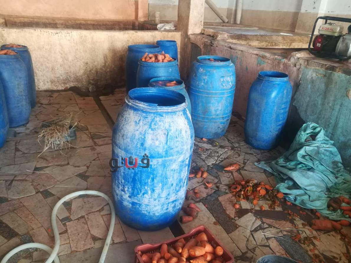و تمكنت الحملة من ضبط 30 برميل جزر مخلل زنة البرميل 80 كيلو بإجمالى 2400 كيلو جزر مخلل غير صالحة للاستهلاك الأدمي لوجود تغيير فى الخواص الطبيعية و وجود حشرات ودود بمصنع مخللات ببني عبيد.