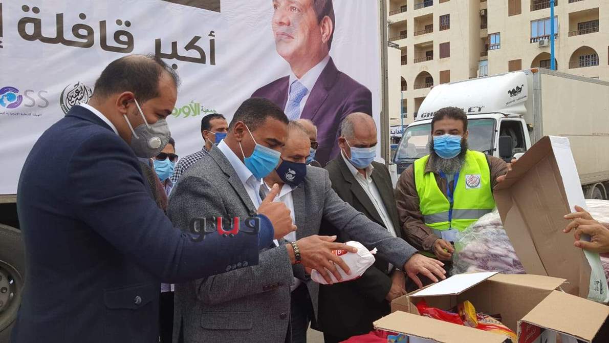 محافظ مطروح يستقبل قافلة تحيا مصر لدعم الأسر الأولى بالرعاية | صور