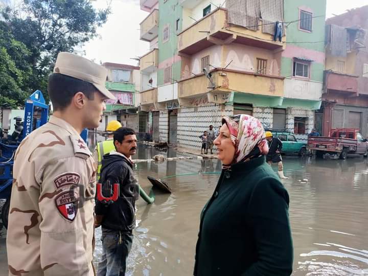 وقامت بالمرور ومتابعه قيام صرف صحي غرب باعمال شفط المياه من شارع المكس ومستشفى الجمهورية ومنطقه نجع العرب وما زال التواجد الميداني لسيادتها مستمر للتعامل الفوري مع التجمعات.