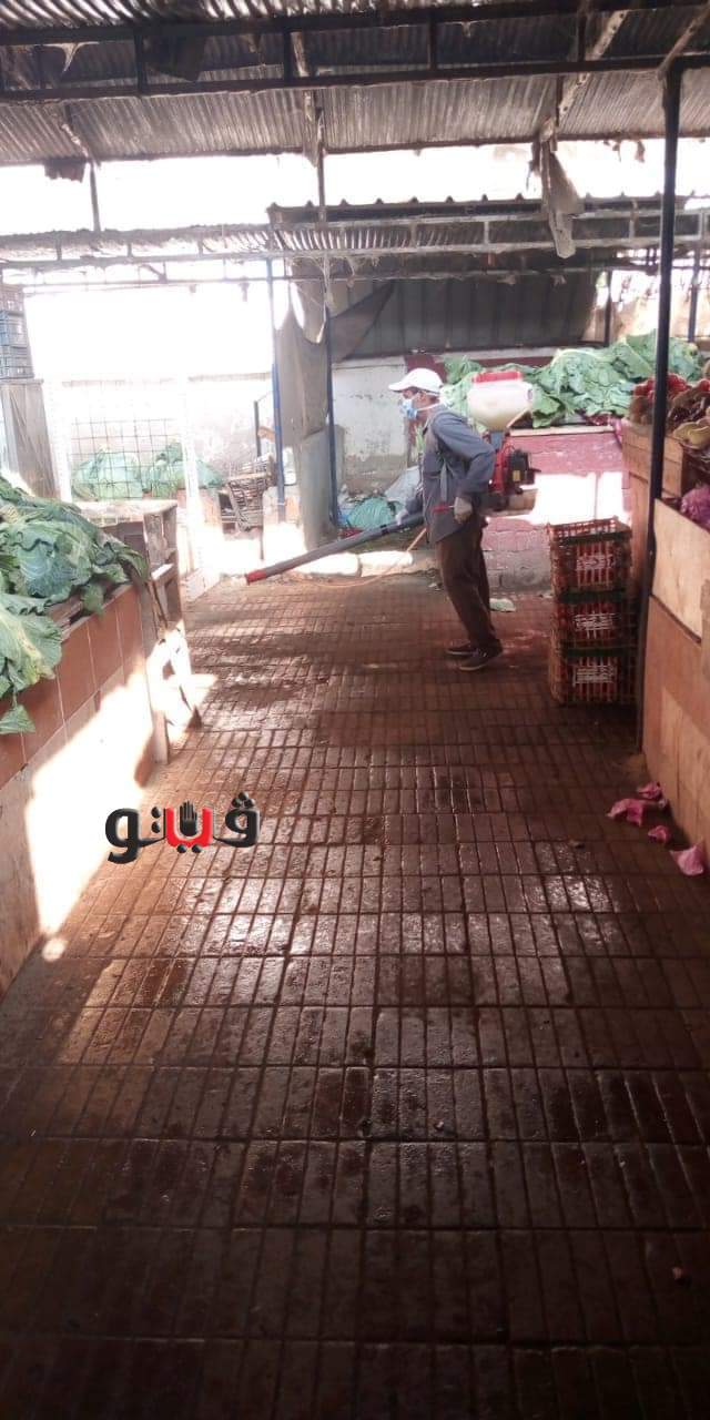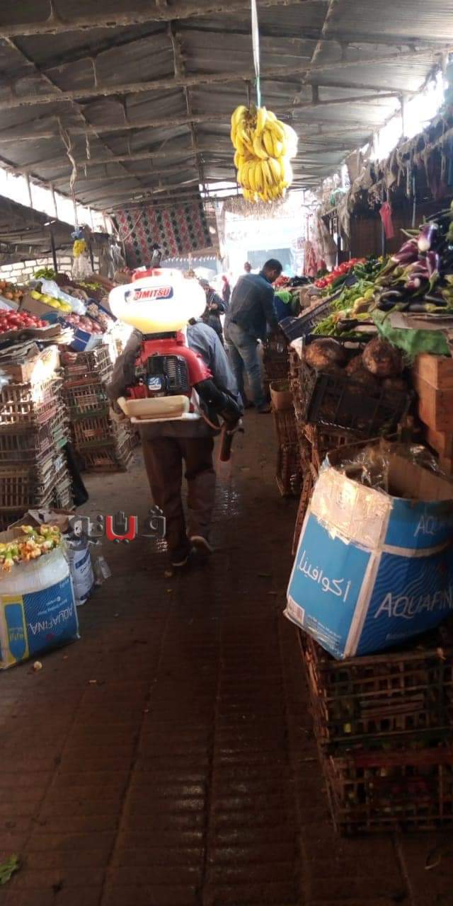 كما تم رش وتعقيم سوق الخضار وتجمعات القمامة والطرق العامة و تم شفط المياه بالطرق نتيجة الامطار .
