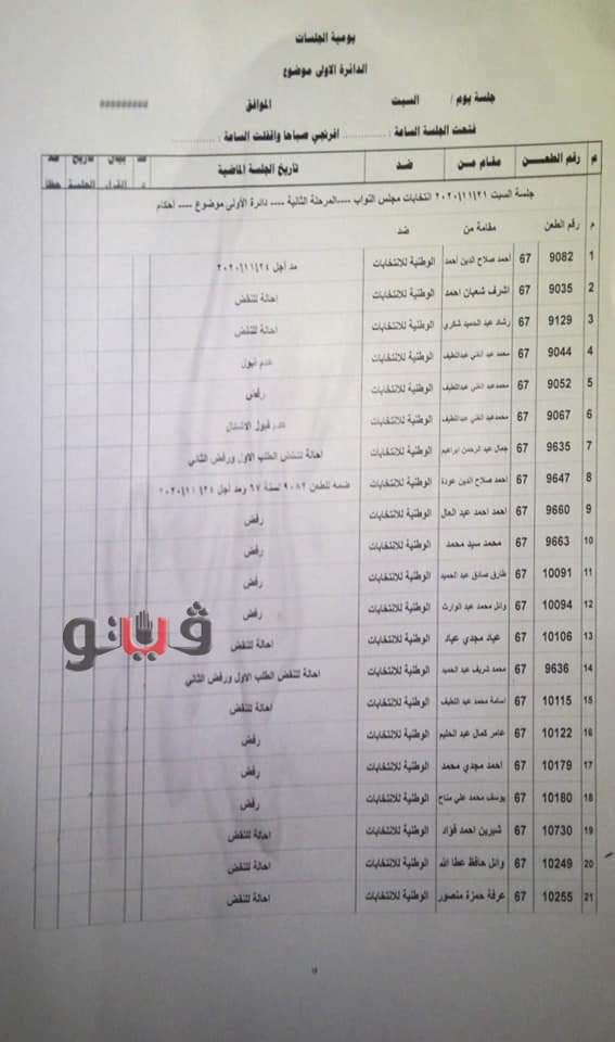 واختصمت الطعون الهيئة الوطنية للانتخابات، وطالبت البعض منها وقف تنفيذ إعلان نتيجة الانتخابات ببعض الدوائر للمرحلة الثانية، فيما تضمنت آخرى وقف فرز أصوات الناخبين ببعض الدوائر والدفع بحدوث خطأ بها.