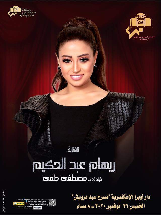 تنظم دار الأوبرا المصرية برئاسة الدكتور مجدى صابر، حفلاً غنائياً للفنانة ريهام عبد الحكيم، بقيادة المايسترو الدكتور مصطفى حلمي، في تمام الساعة الثامنة من مساء يوم الخميس المقبل على مسرح سيد درويش أوبرا الإسكندرية.