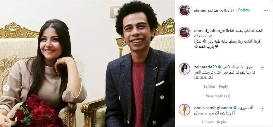 وكتب أحمد سلطان على إنستجرام "الحمد لله الذي بنعمته تتم الصالحات قرينا الفاتحه ربنا يجعلها بدايه طيبه بإذن الله شكرًا يارب الحمد لله"