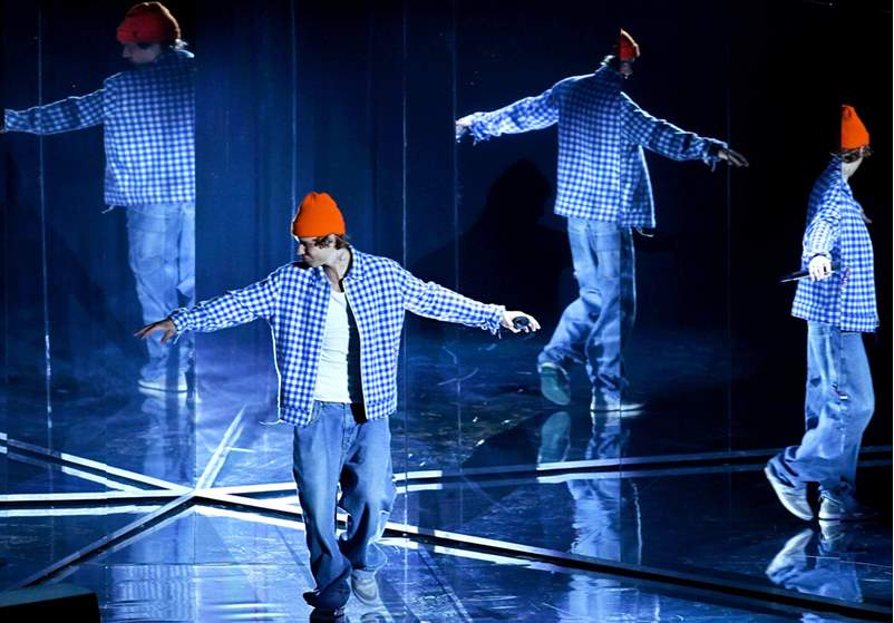 وصل الفنان العالمي جاستن بيبر حفل توزيع جوائز الموسيقى الأمريكية 2020، مرتديًا جينز وقميص كاروهات وغطاء رأس، ليفتتح الحفل المقام في مسرح مايكروسوفت في لوس أنجلوس.