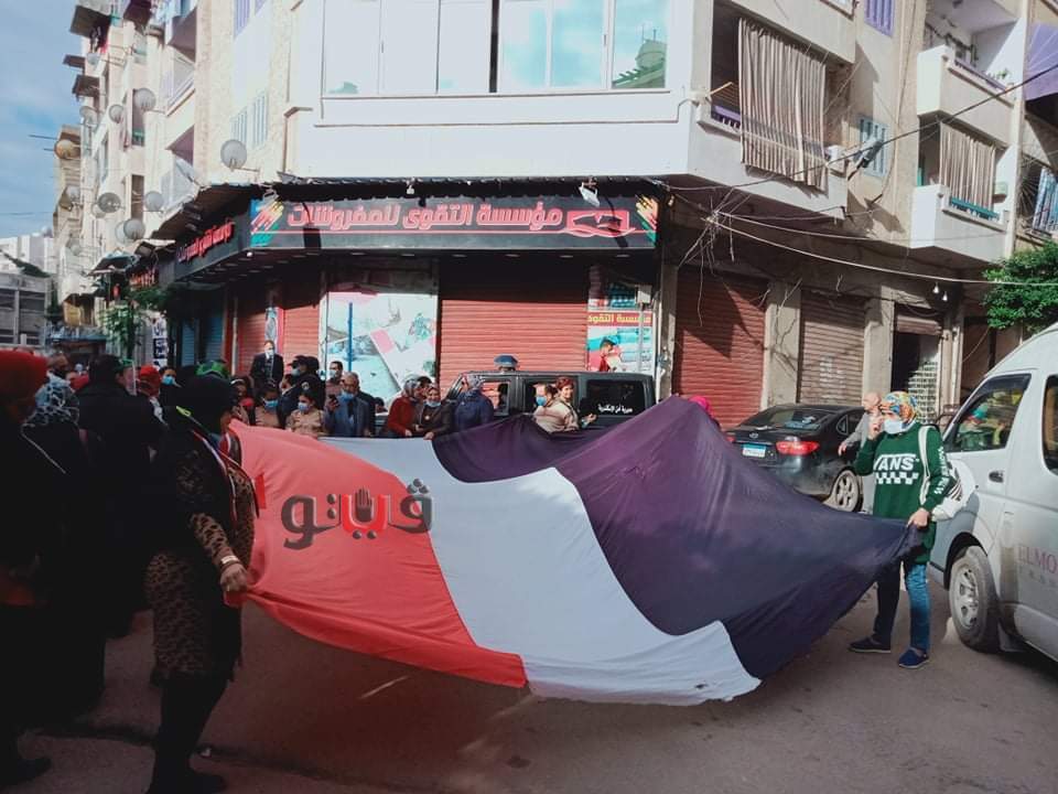 وأطلق المواطنون الهتافات والزغاريد ورفع الأعلام المصرية ورددوا بعض العبارات مثل بنحبك يا مصر، تحيا مصر تحيا مصر.