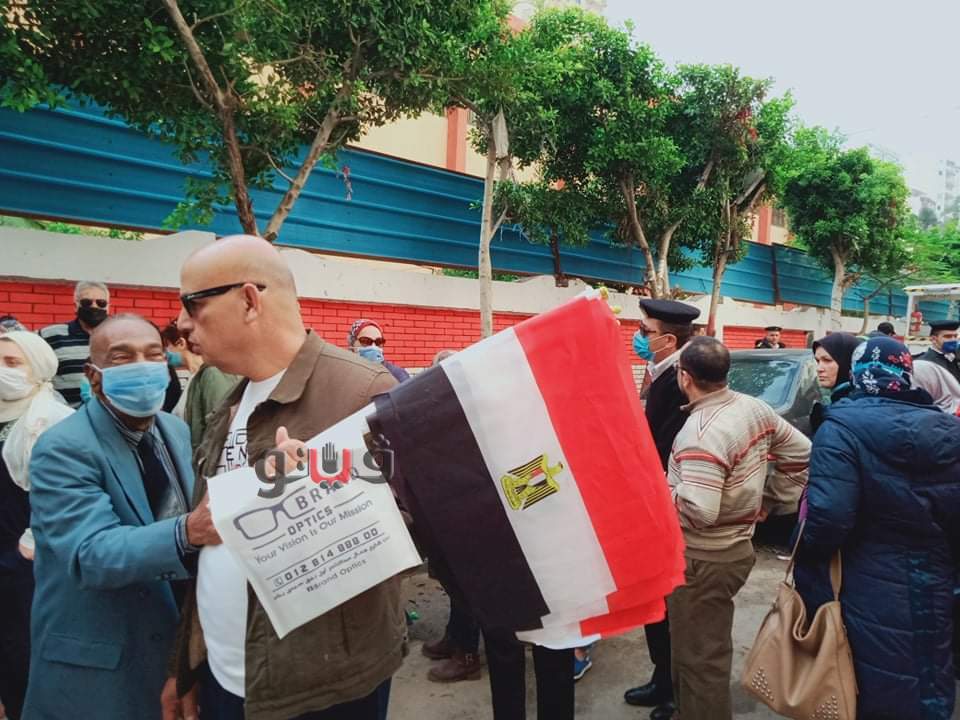 وقفة بالأعلام المصرية أمام اللجان الانتخابية في الإسكندرية