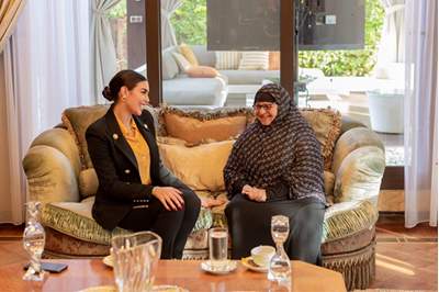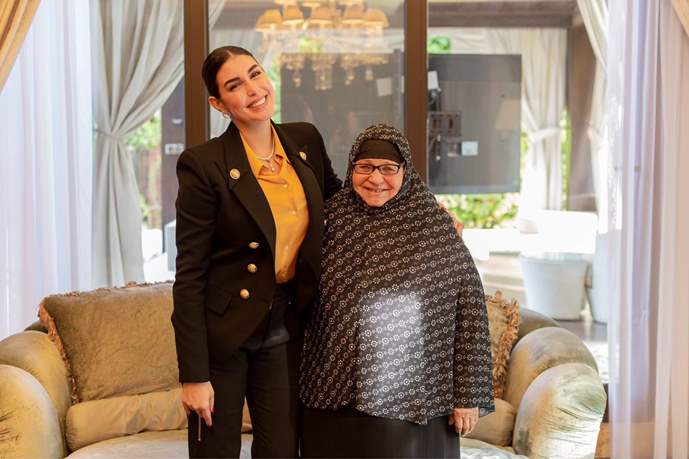 ياسمين صبري على استقبال السيدة نعمات، التي لقبت بسيدة المطر، في منزلها والتحدث