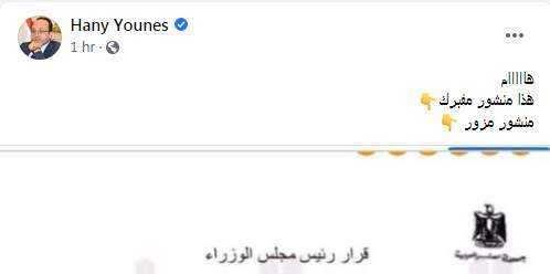 وتابع "تعلق الدراسة بشكل مؤقت بالمدارس والجامعات والمعاهد ولمدة أسبوعين من تاريخ 28 نوفمبر 2020 على أن تستكمل بنظام التعليم عن بُعد خلال فترة التوقف"، الأمر الذي نفاه هاني يونس، المتحدث الإعلامي باسم رئاسة الوزراء، قائلا: "المنشور مفبرك ومزور".