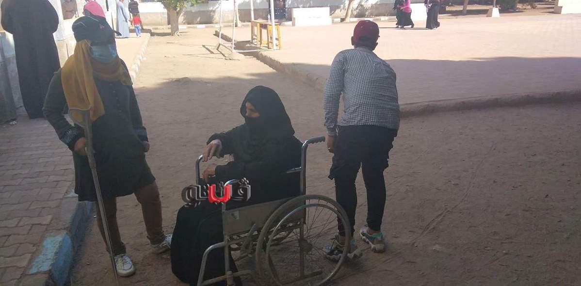 مسنة على كرسي متحرك تدلي بصوتها في انتخابات النواب بقنا | صور