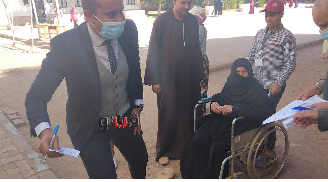كما حرصت سيدة مسنة بقنا على المشاركة في عملية التصويت بانتخابات البرلمان 2020 ، وذلك على كرسي متحرك برفقة حفيدها، وسط إجراءات احترازية لمنع انتشار فيروس كورونا المستجد.