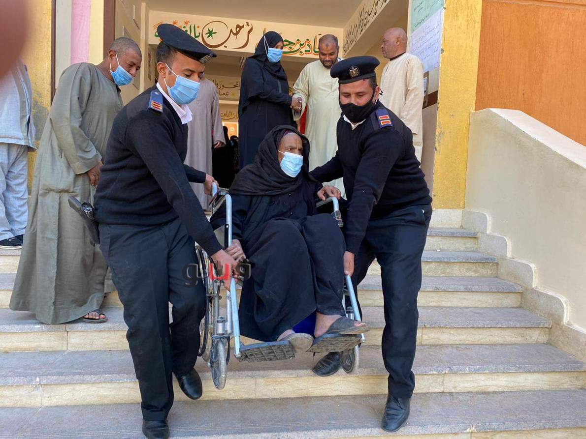 الشرطة تنقل مسنين على كرسيين متحركين للمشاركة في انتخابات النواب بالأقصر | صور