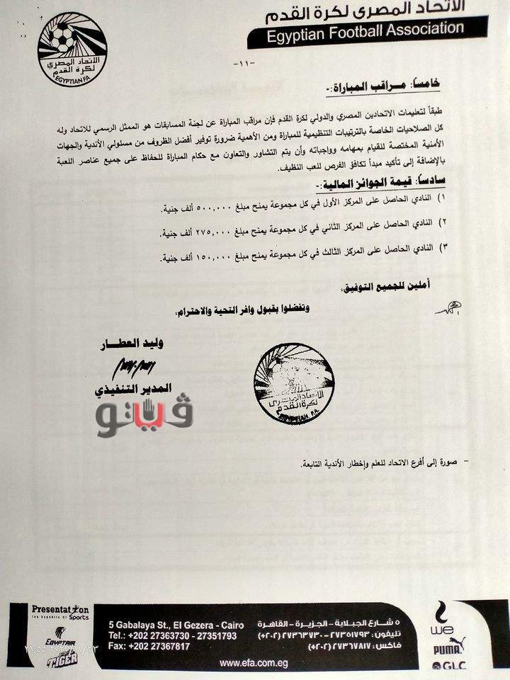 نصف مليون جنيه مكافأة أول القسم الثاني موسم 2020 / 2021