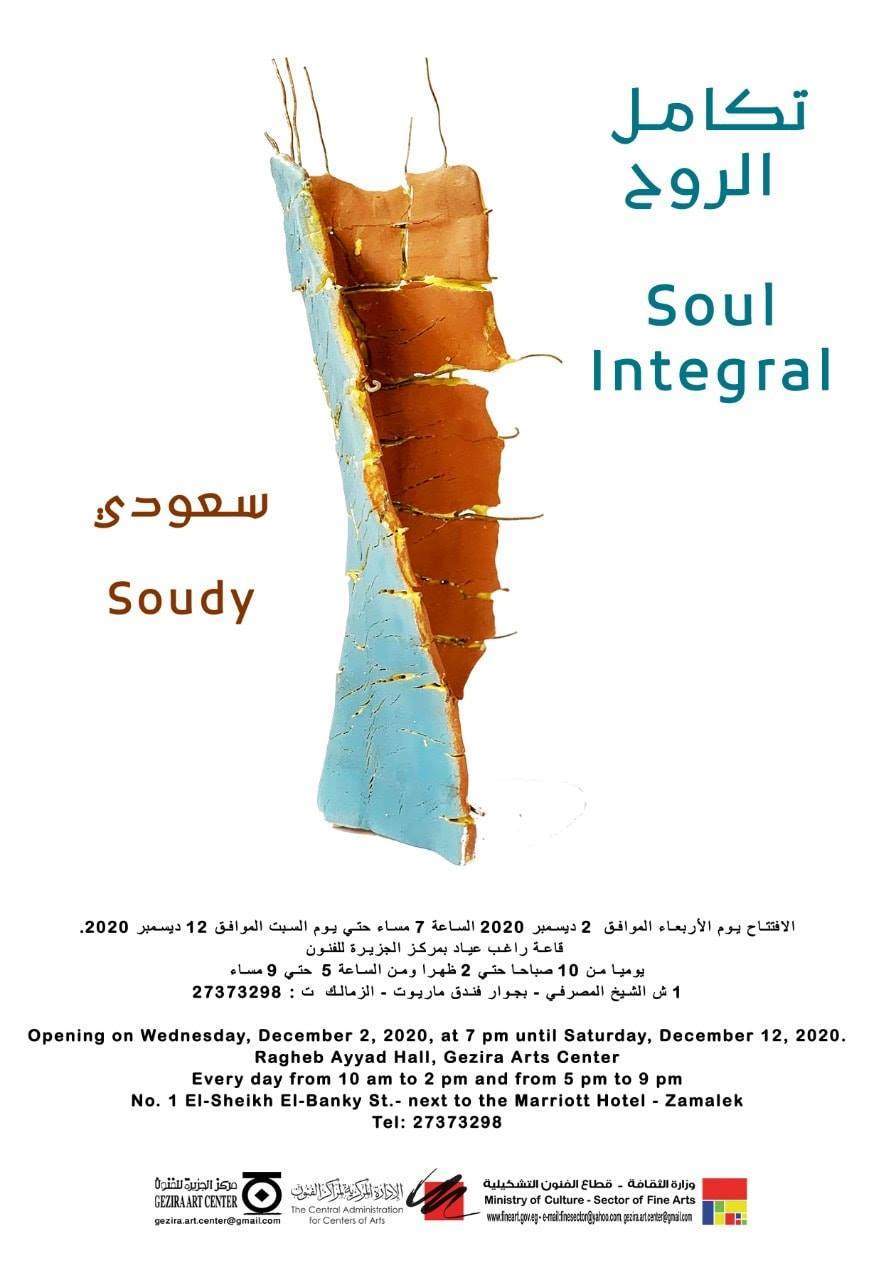 تُنظم نقابة الفنانين التشكيليين، برئاسة الدكتورة صفية القباني، معرضاً فنياً للفنان التشكيلي الخزاف محمد سعودي ، تحت اسم "تكامل الروح" بمشاركة نخبة من كبار الفنانين.