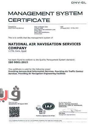 حصلت الشركة الوطنية لخدمات الملاحة الجوية إحدى الشركات التابعة للشركة القابضة للمطارات والملاحة الجوية - على تجديد اعتماد شهادة الأيزو لمدة ثلاث سنوات.