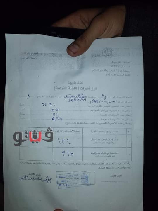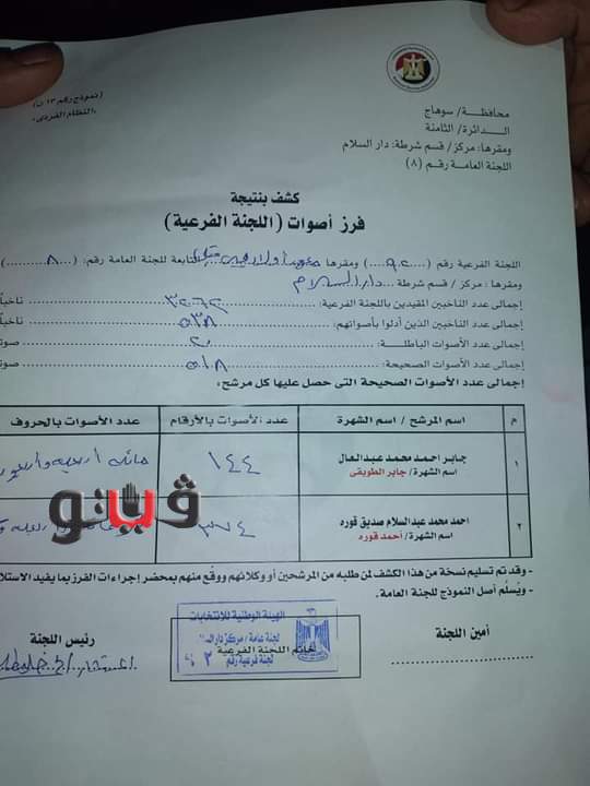 اللجنة الفرعية بالدائرة الثامنة بمركز دار السلام بمحافظة سوهاج عن العدد الحصري لأصوات المرشحين فى جولة الاعادة فى انتخابات