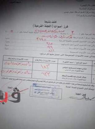 الحصر العددي لأصوات المرشحين بواقع 183 صوتا للمرشح علي معنا مسعود عوض و 633 للمرشح
