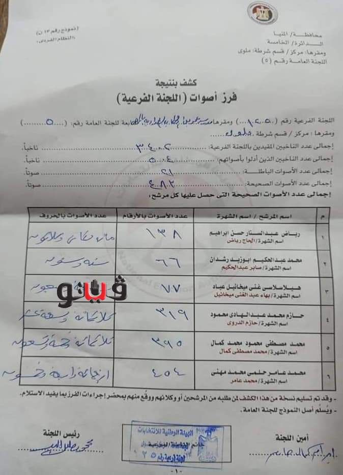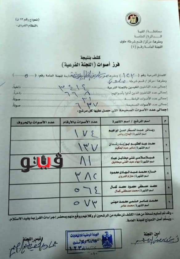 الحصر العددي لـ 4 لجان فرعية بملوى جنوبي المنيا