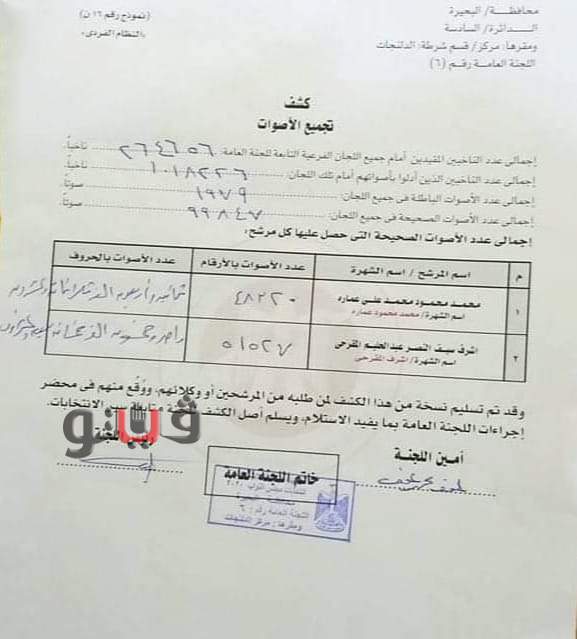 ومن المقرر أن تتلقى اللجنة العامة بمحافظة البحيرة الحصر العددي لأصوات كل مرشح بكافة اللجان الفرعية تمهيدا لتجميعها وإرسالها إلى الهيئة الوطنية للانتخابات التي ستعلن النتيجة النهائية عقب إضافة أصوات الناخبين بالخارج.