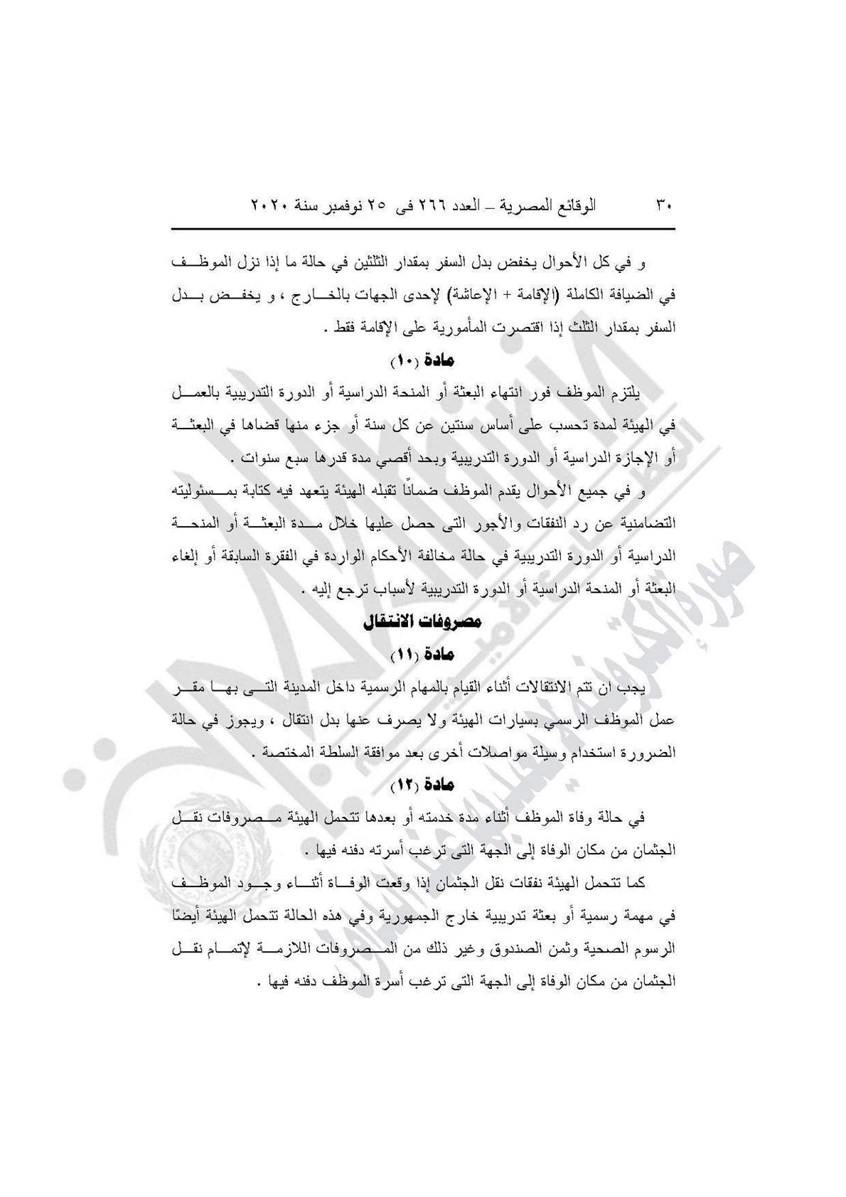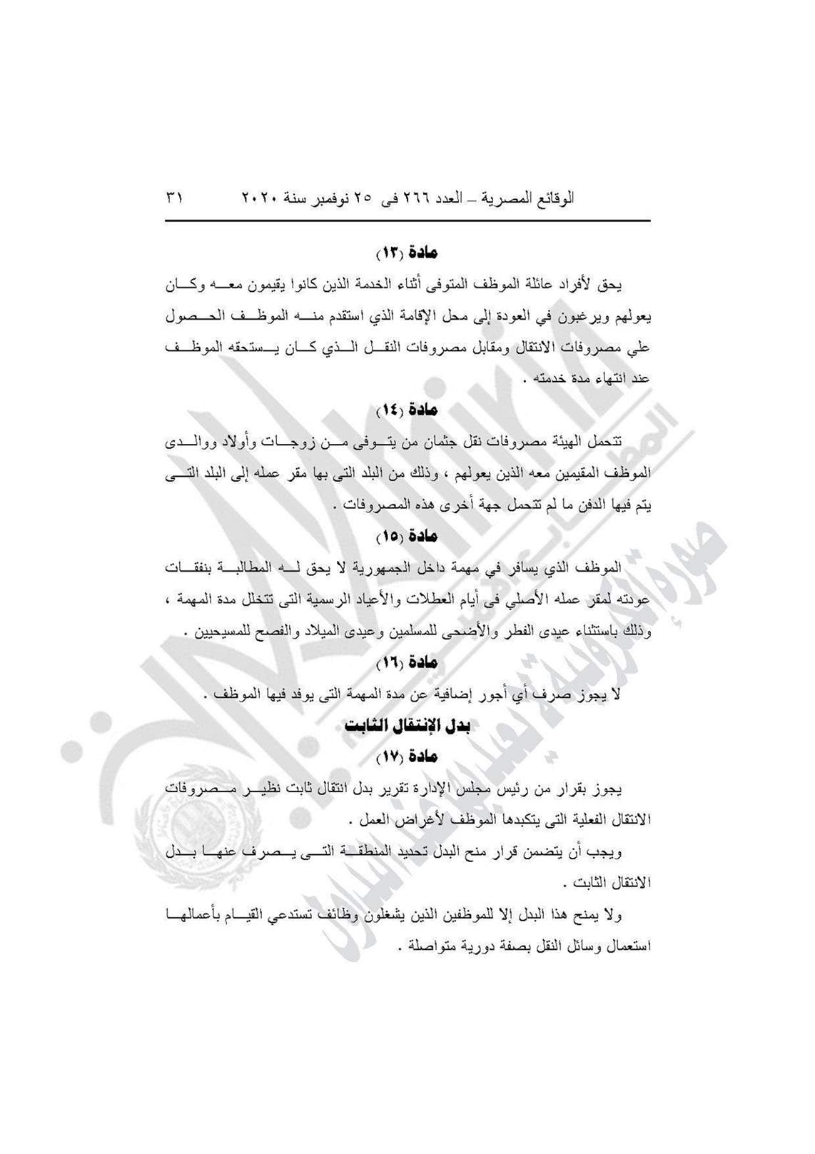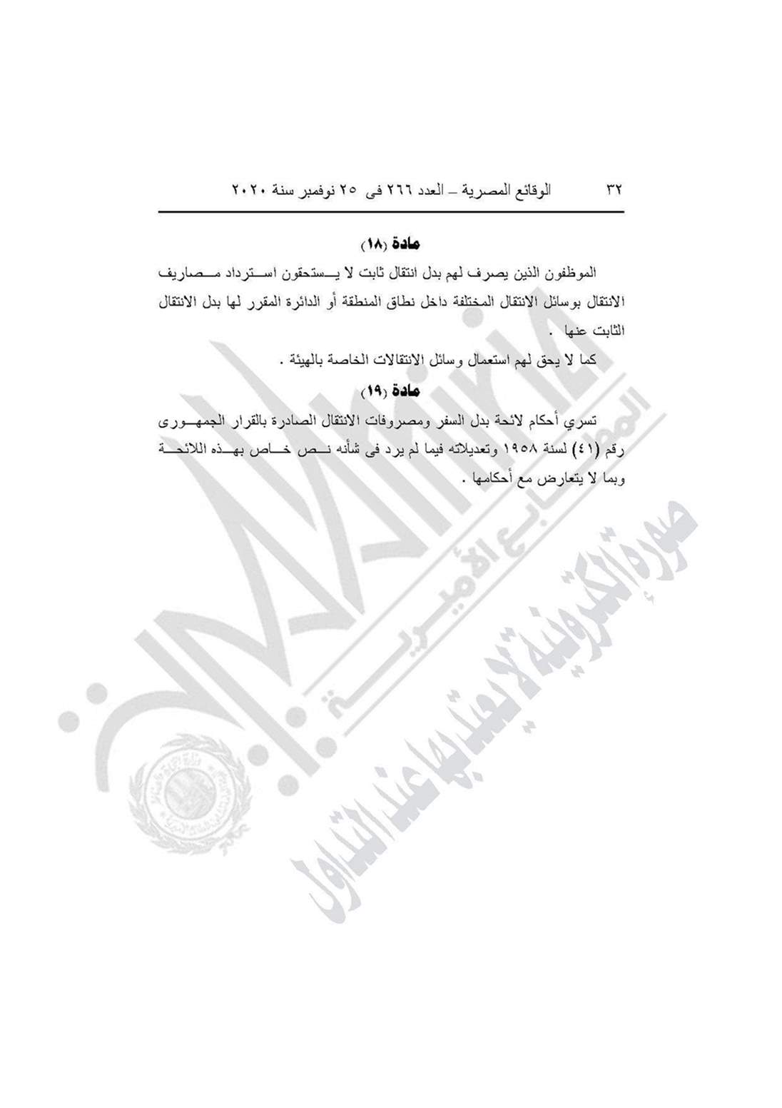 والقرار رقم 2403 لسنة 2020، بإصدار لائحة بدل السفر ومصروفات الانتقال، لائحة بدل السفر و مصروفات الانتقال للموظفين بالهيئة العامة لميناء الاسكندرية.