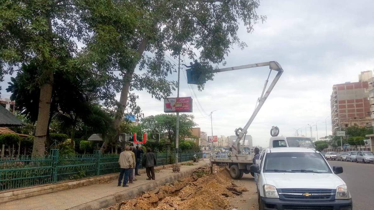 وعلى الفور قام قطاع الحدائق بالتنسيق مع قطاع الكهرباء بحى غرب ، وشركة كهرباء غرب المنصورة بالتوجه لمكان الشجرة المتواجدة بمنطقة المشاية السفلية بمحيط فيلا غيث .