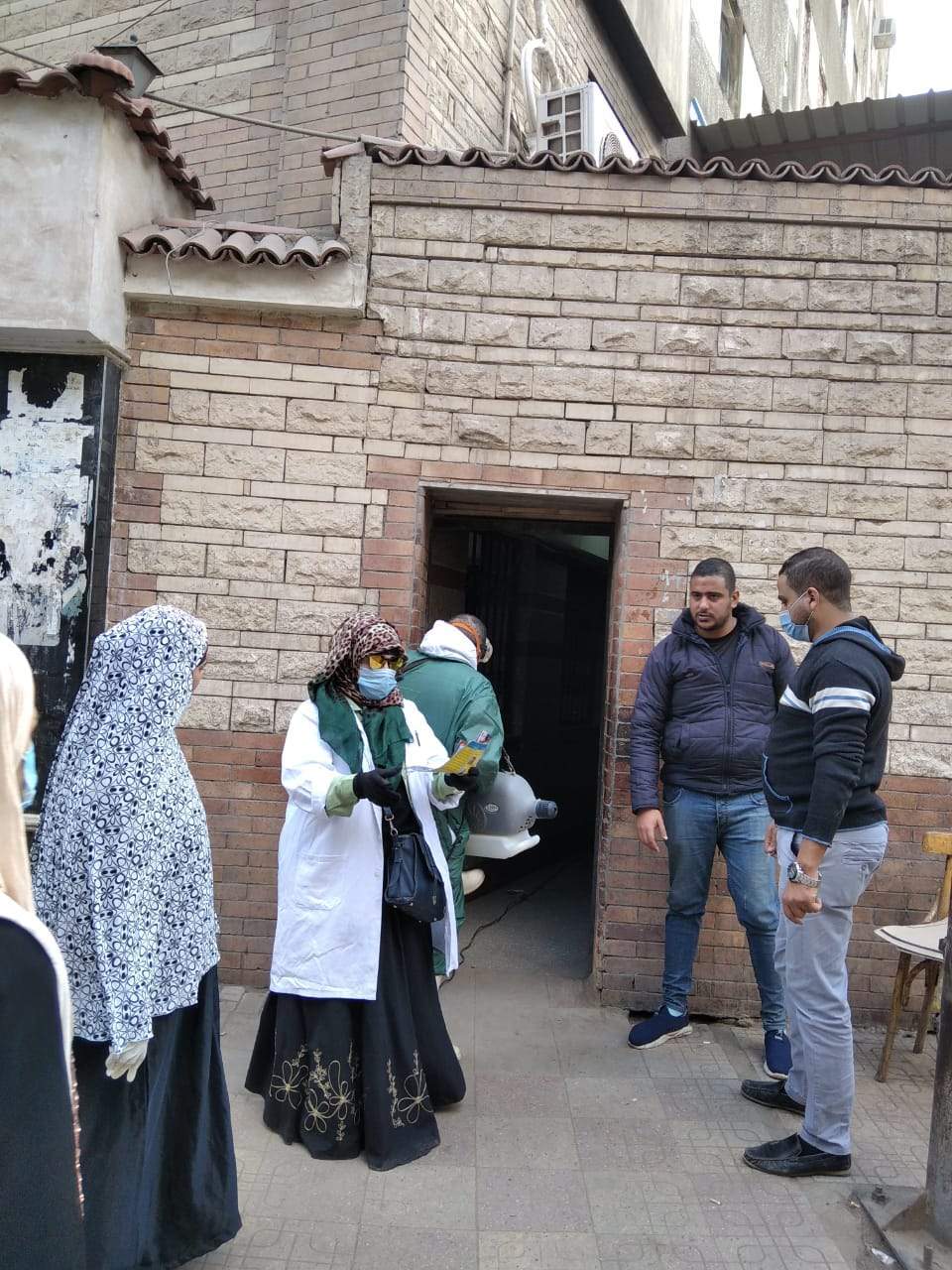 المصريين وبنك مصر فرع أم المصريين للوقاية من كورونا، وذلك بالتعاون مع إدارة الطب البيطرى بالحى.