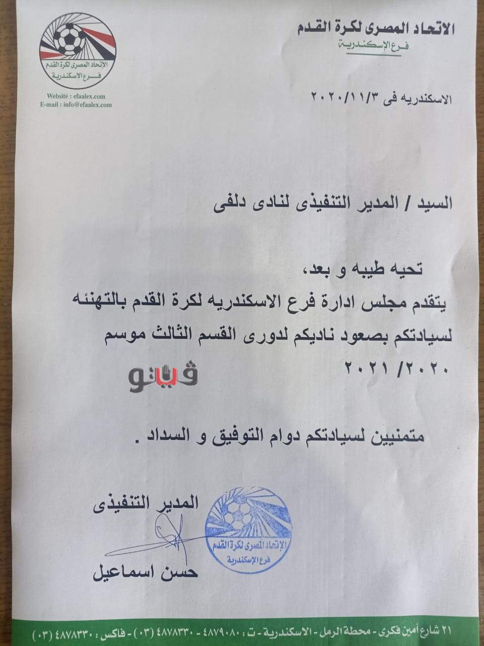 وكان حمدي السيد المدير الفني لنادي دلفي أكد أن فريقه تأهل بجدارة لدوري القسم الثالث بعد تصدره دورة الترقي برصيد 4 نقاط بفارق الأهداف عن فريق MVB ، وتم فتح تحقيق بمعرفة منطقة الإسكندرية في حقيقة تفويت المباراة من فريق ستيا لصالح فريقنا بعد فوزنا عليهم 8/2 و لكن تقرير المراقب والحكم جاءت نتيجته بعدم وجود أي تلاعب في المباراة، وهو ما دفع منطقة الإسكندرية بعدها لإرسال خطاب تهنئة لفريق دلفى بالتأهل لدورى القسم الثالث، و أيضا قام مسئولو اتحاد الكرة بمطالبتنا بدفع رسوم القيد اللاعبين الجدد للدرجة الثالثة.