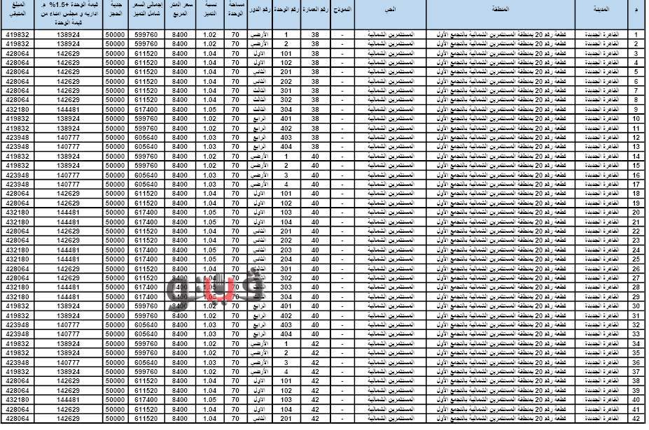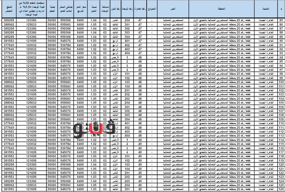 وأسعار الوحدات المطروحة كالتالي: