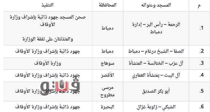 والمساجد التي سيتم افتتاحها الجمعة القادمة هي :