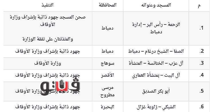 والمساجد التي سيتم افتتاحها اليوم الجمعة هي: