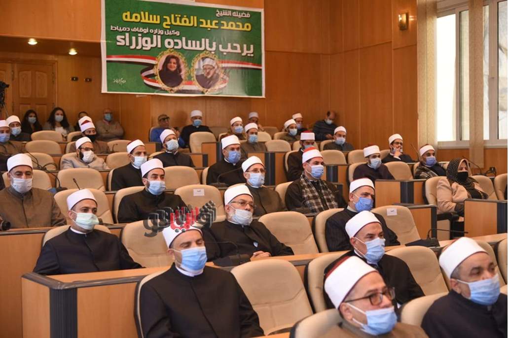 شهد الدكتور محمد مختار جمعة وزير الأوقاف، والسفيرة نبيلة مكرم وزيرة الدولة للهجرة وشئون المصريين بالخارج، ندوة للتوعية بمخاطر الهجرة غير الشرعية بمحافظة دمياط والتي تنظمها وزارة الأوقاف للأئمة.