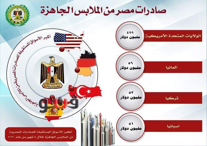 تعرف على صادرات مصر من الملابس الجاهزة فى 8 شهور من 2020 | إنفوجراف