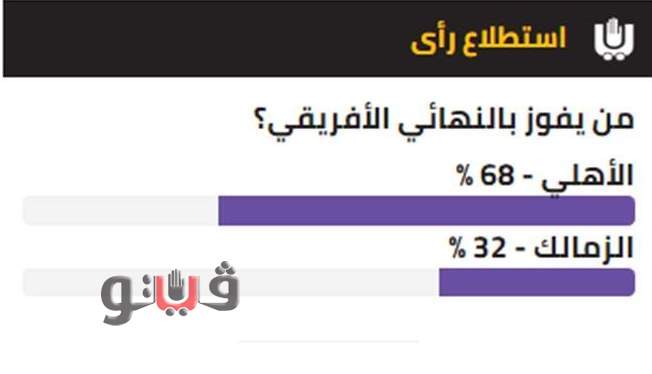 68 % من قراء فيتو يتوقعون فوز الأهلي على الزمالك في النهائي الأفريقي