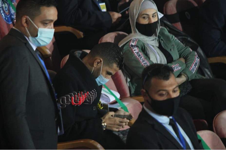مؤمن زكريا وزوجته يؤازران الأهلي من مدرجات إستاد القاهرة | صور