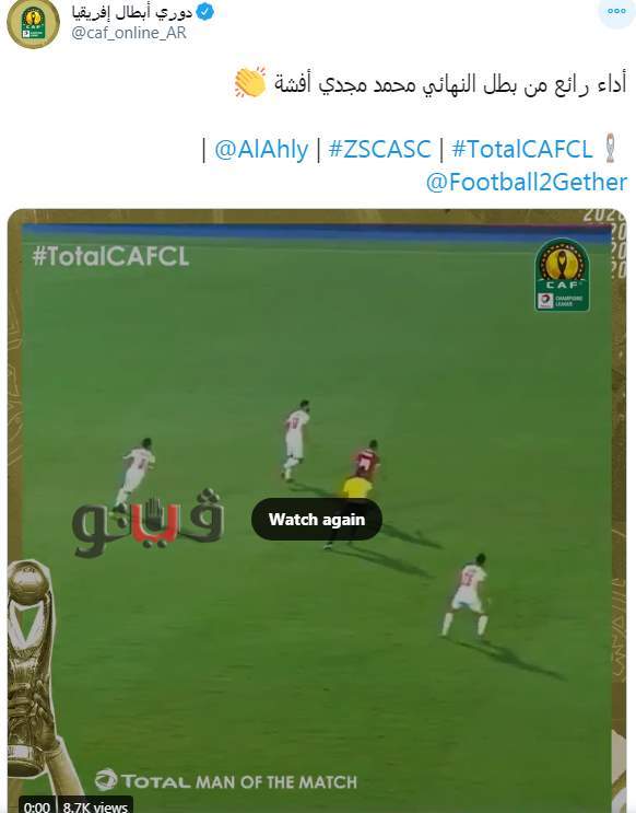أداء رائع من بطل النهائي محمد مجدي أفشة 👏#TotalCAFCL | #ZSCASC | @AlAhly | @Football2Gether pic.twitter.com/R0nERDa5sq— دوري أبطال إفريقيا (@caf_online_AR) November 28, 2020