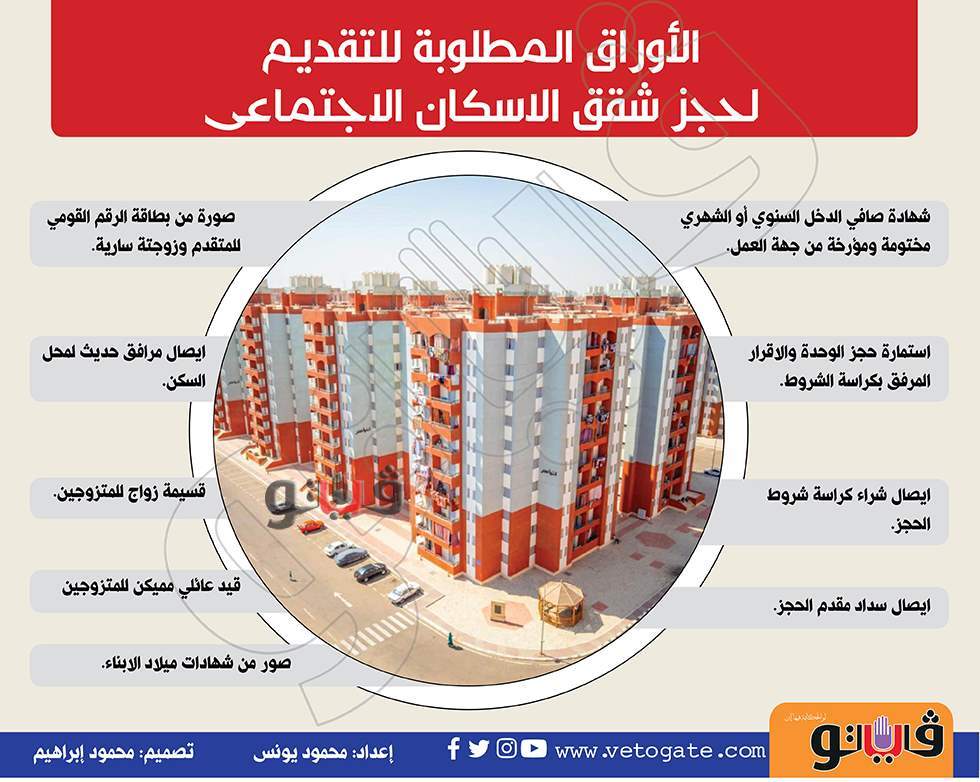 الاوراق المطلوبة لحجز شقق الاسكان الاجتماعى..إنفوجراف السبت 28/نوفمبر/2020 - 05:07 م 11/28/2020 5:07:35 PM الاوراق المطلوبة للتقديم لحجز شقق الاسكان الاجتماعى محمود يونس شارك طباعة 18 حجم الخط شارك طباعة الاسكان الاجتماعي شقق الإسكان الاجتماعى الاعلان الثامن عشر