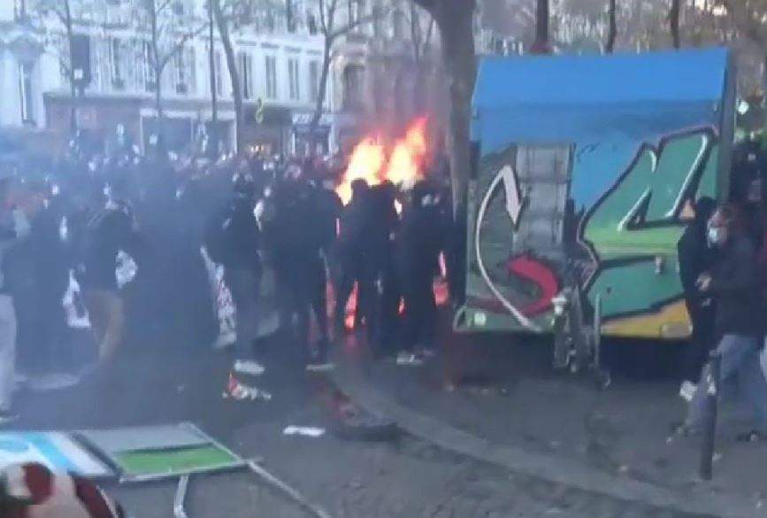أضرم المتظاهرون الفرنسيون مساء اليوم السبت النار وسط العاصمة باريس احتجاجا وتنديدا بـ "قانون الأمن الشامل".