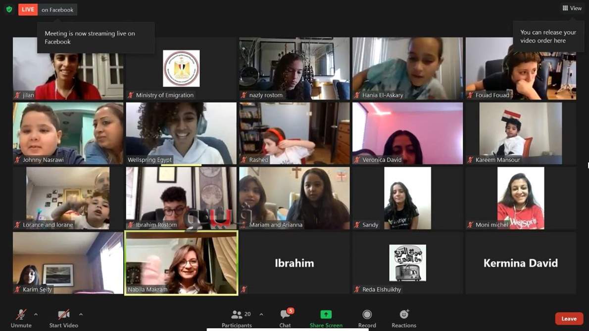 شاركت السفيرة نبيلة مكرم عبد الشهيد، وزيرة الدولة للهجرة وشؤون المصريين بالخارج، اليوم السبت، في فعاليات معسكر "اتكلم عربي" للأطفال المصريين المقيمين في الولايات المتحدة الامريكية عبر تطبيق "زووم"، من أجل تشجيعهم على التحدث باللغة العربية واللهجة المصرية، بالتعاون مع شركة "ويل سبرنج" المتخصصة في إقامة وتنظيم المعسكرات.
