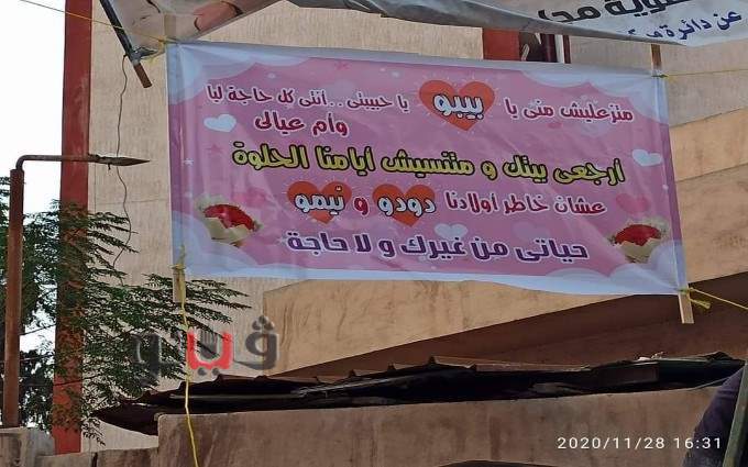 علق زوج لافتة بجوار مبنى منطقة وعظ الغربية، يعتذر فيها لزوجته قائلا: "ارجعي بيتك ومتنسيش أيامنا الحلوة، عشان خاطر أولادنا دودو ونيمو، متزعليش مني يا بيبو، حبيبتي أنت كل حاجة ليا وأم عيالي، حياتي من غيرك ولا حاجة.