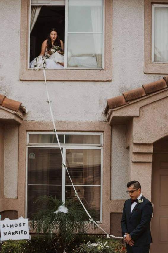 وزادت الأمور تعقيداً بعد اقتراب مدة انتهاء تصريح الزواج، فقرر الاثنان إقامة العرس تحدياً لكورونا، وارتدت العروس فستان الزفاف الأبيض، وجلست في غرفتها أمام النافذة، بينما وقف عريسها في ساحة المنزل.