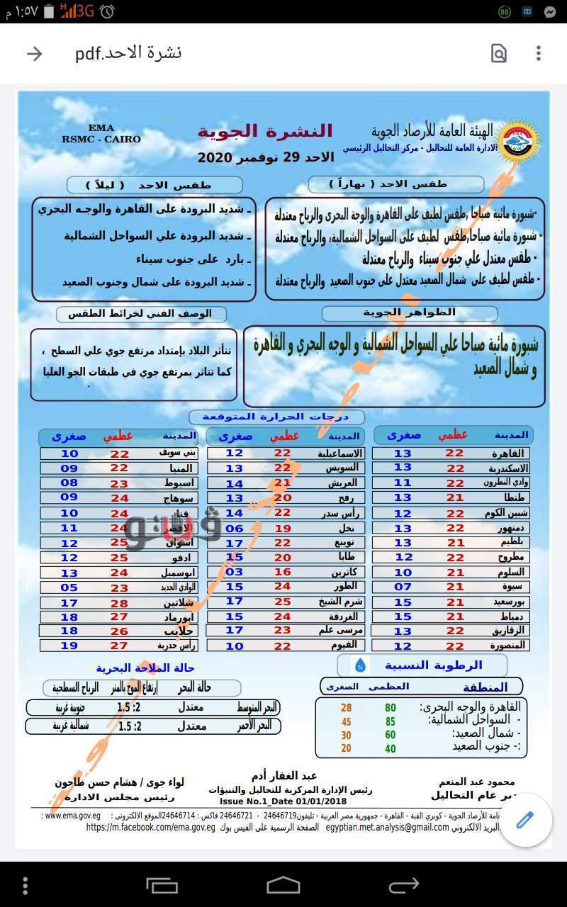 وفيما يلي بيان بدرجات الحرارة المتوقعة اليوم على مدن ومحافظات مصر كالتالي: