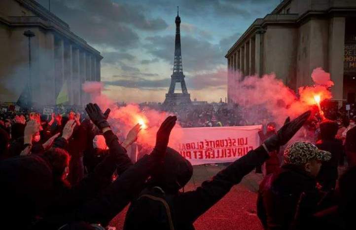 وكانت قد تصاعدت حدة المواجهات بين الشرطة الفرنسية و المتظاهرين فى وسط العاصمة الفرنسية باريس، مساء أمس السبت، بعدما انطلقت مظاهرات حاشدة تندد بقانون الأمن الشامل.