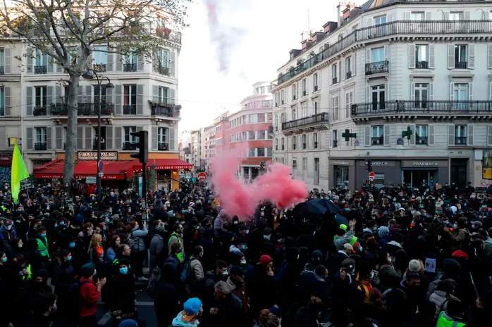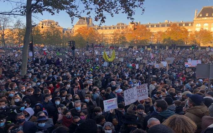 شهدت العاصمة الفرنسية باريس وعدد من المدن الأخرى، أمس السبت، مظاهرات حاشدة للتنديد بـ "قانون الأمن الشامل" الذي صدقت عليه "الجمعية الوطنية الفرنسية"، الغرفة السفلى للبرلمان، في انتظار مناقشته في مجلس الشيوخ.