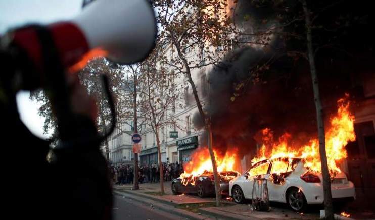 وشهدت الأحداث قيام المتظاهرين بإشعال النيران فى أحد المقاهي في ساحة الباستيل وسط باريس.