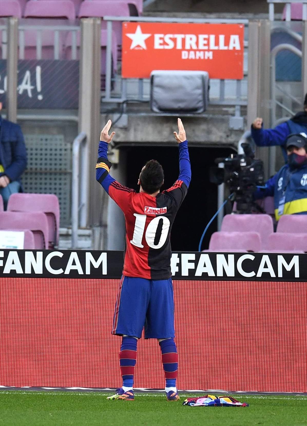 واحتفل ميسي بالهدف بارتداء قميص مواطنه الراحل دييجو مارادونا الذي رحل عن عالمنا منذ أيام، وارتدى ميسي القميص رقم ١٠ لفريقه السابق نيو أولد بويز لتخليد ذكري مارادونا.