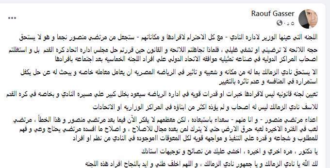 شن المهندس رؤوف جاسر عضو مجلس الزمالك السابق، هجوما عنيفا على وزير