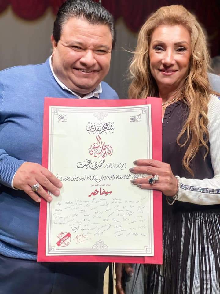 وأهدى خالد جلال مخرج سينما مصر، شهادة تقدير لاسم الفنان " حمدى غيث" موقعة من كل أبطال العرض تحمل عنوان "إلى من عاش ليبقى"، عقب عرض المسرحية، وتسلمتها ابنته مي حمدي غيث.