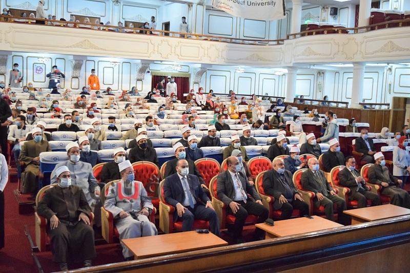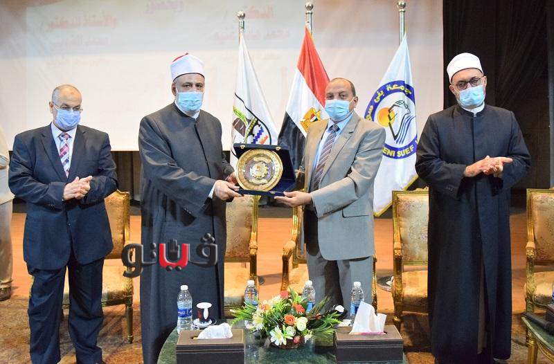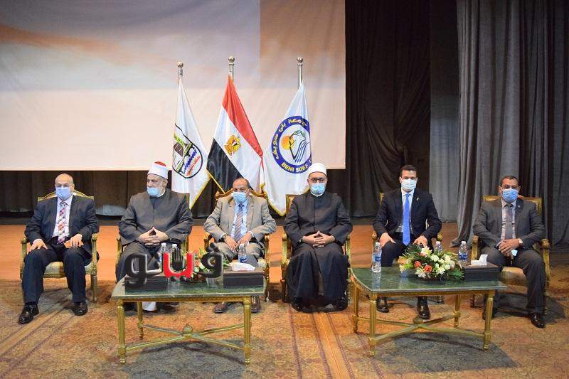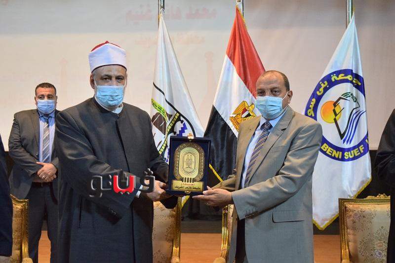وجاء ذلك بحضور الدكتور محمد الضويني وكيل الأزهر الشريف والدكتور نظير عياد الأمين العام لمجمع البحوث الإسلامية، والدكتور أسامة الحديدي مدير مركز الأزهر العالمي للفتوى الإلكترونية، والدكتور جمال عبد الرحمن نائب رئيس الجامعة لشئون التعليم والطلاب، الدكتور صبري تمام عميد كلية الطب البيطري، والشيخ سيد عبد اللطيف رئيس المنطقة الأزهرية ببني سويف، وعمداء الكليات، وقيادات ومشايخ الأزهر الشريف.